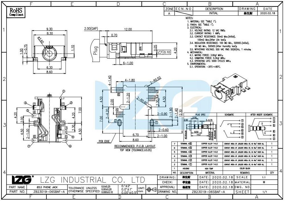 插拔力 : 7-20N