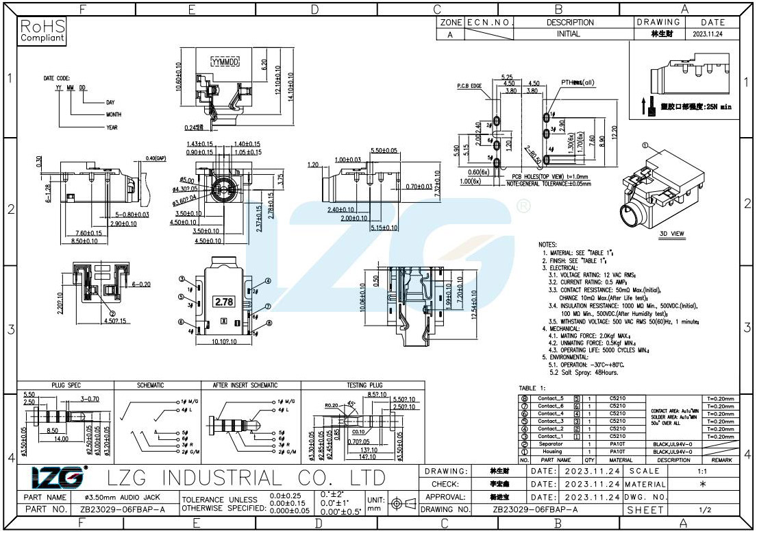 插拔力 : 7-20N