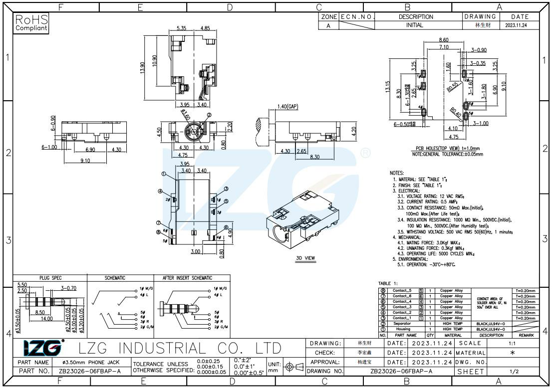 插拔力 : 7-20N